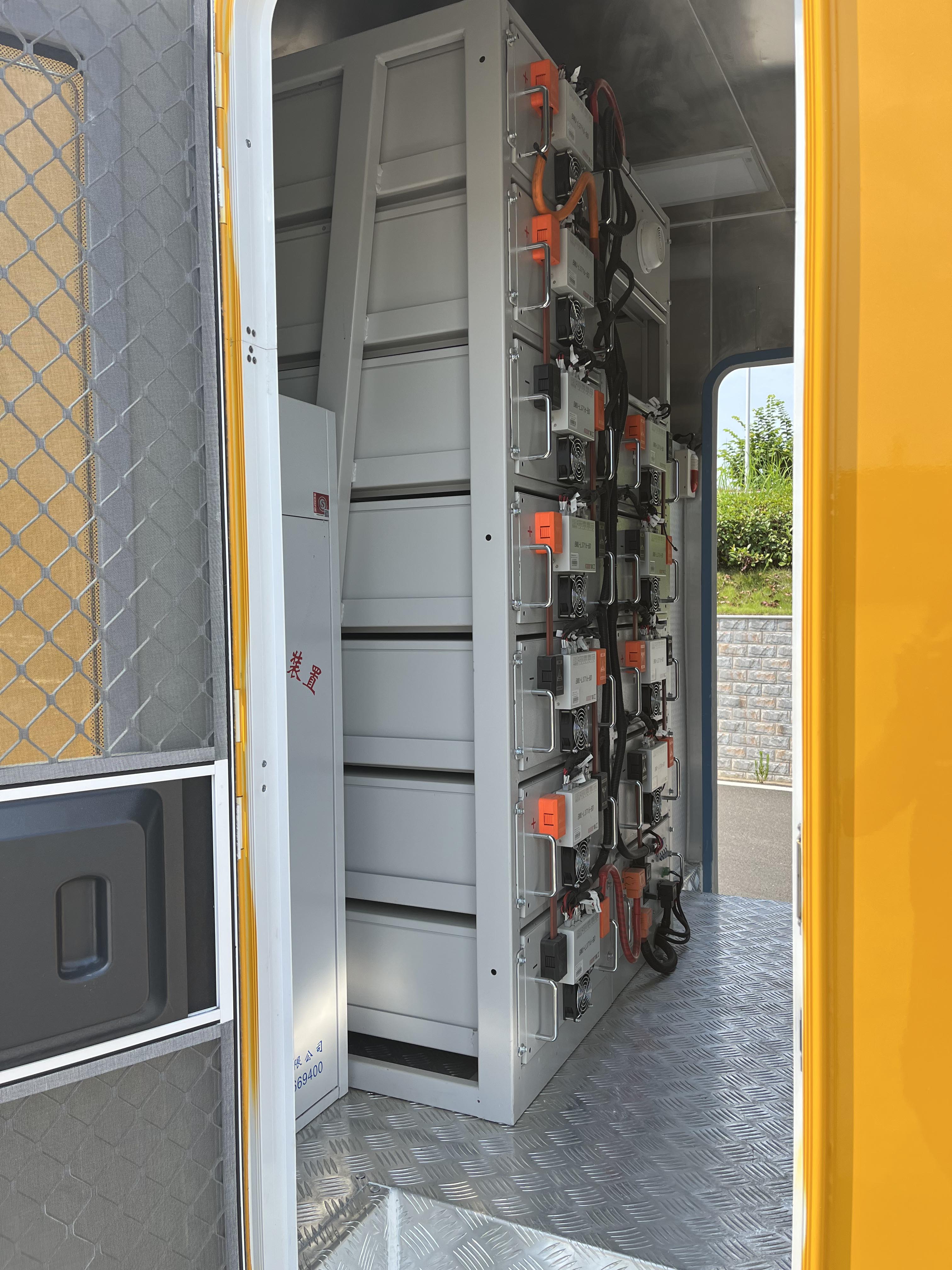 8,通過充電樁快速補(bǔ)電:儲能車外艙設(shè)計充電樁充電插座,可通過直流快充樁對儲能車電池快速補(bǔ)電。