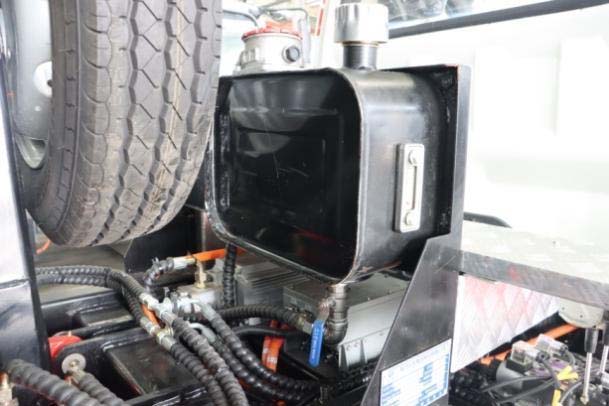 一、底盤配置: 采用東風EQ1320GTZEVJ車身,配置玉柴TZ388XSSFE01發動機360馬力,國六排放標準,軸距1850+3550+1350(mm),整備質量14.15噸,額定載質量17.72噸,五擋變速箱,帶動力轉向,帶原廠空調,隨底盤選裝電池護罩,輪輞,踏板;側面防護裝置材料為鋁合金,與底盤縱梁采用 焊接連接;后下部防護裝置材料為 Q235,與車架螺栓連接,截面尺寸:120×60mm,離地高 度為 445mm;動力蓄電池種類:磷酸鐵鋰蓄電池,生產企業:寧德時代新能源科技股份有 限公司;驅動電機類型:永磁同步電機,驅動電機功率:360kW,生產企業:陜西法士特齒輪 有限責任公司;ABS 型號:CM4XL-4S/4M;ABS 生產企業:廣州瑞立科密汽車電子股份有限 公司;該車安裝具有衛星定位功能的行駛記錄儀;專用功能及裝置該車上黃牌,城區道路請注意限行標識。