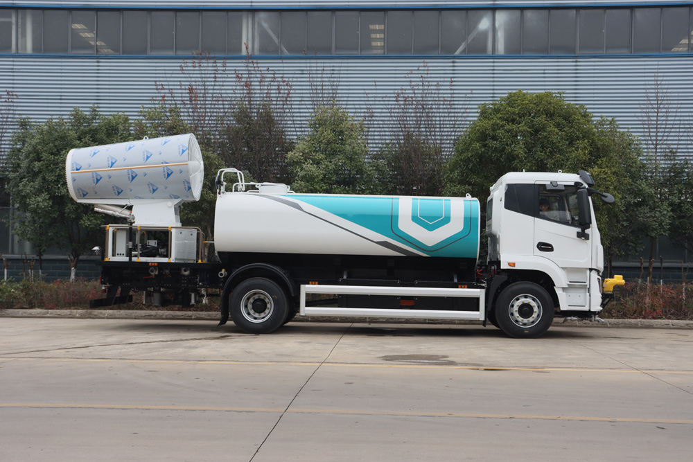 整車具備前噴、對(duì)沖、后灑、側(cè)噴、綠化水炮、霧炮,外接手動(dòng)噴槍等多種作業(yè)功能,均可單 獨(dú)或組合使用,罐體有效容積 9.65m³ , 同級(jí)別行業(yè)最大;