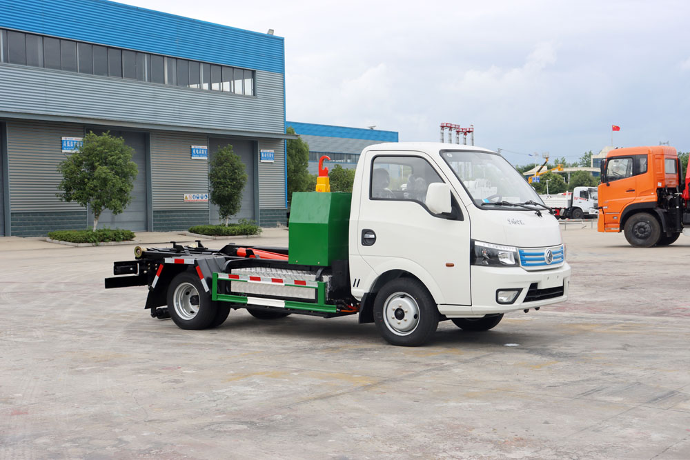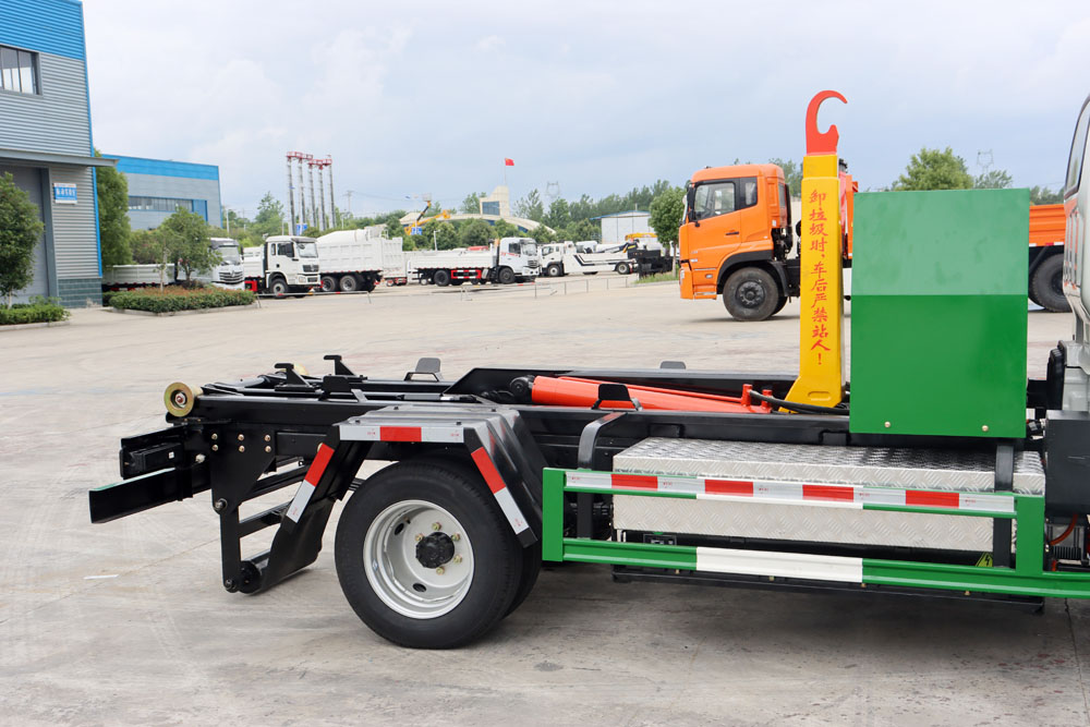 四、其他說明: 東風華神純電動車廂可卸式垃圾車,是在純電動二類底盤的基礎上,加裝垃圾箱勾臂、液壓系統,由機械、液壓(氣路)、電器三部分合為一體的專用垃圾轉運車。
