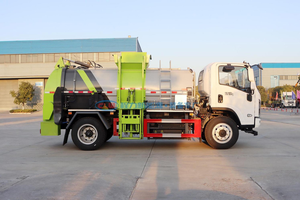 四、其他說明: 由于餐廚垃圾車上裝結(jié)構(gòu)復(fù)雜,自質(zhì)量較大,降低餐廚垃圾車自質(zhì)量,提高其載荷 利用率,將降低車輛運(yùn)營(yíng)成本。因此采用高強(qiáng)度材料,以降低上裝自質(zhì)量;擋泥板、裝飾件、蓋 板等輔助件采用密度較小的注塑件,采用集成化程度較高的零部件,以減少空間占用和自質(zhì)量, 同時(shí)有利于改善液壓系統(tǒng)的工作性能。專人試車;模擬各種復(fù)雜工作環(huán)境,所有壓縮發(fā)車前實(shí)物測(cè)試。