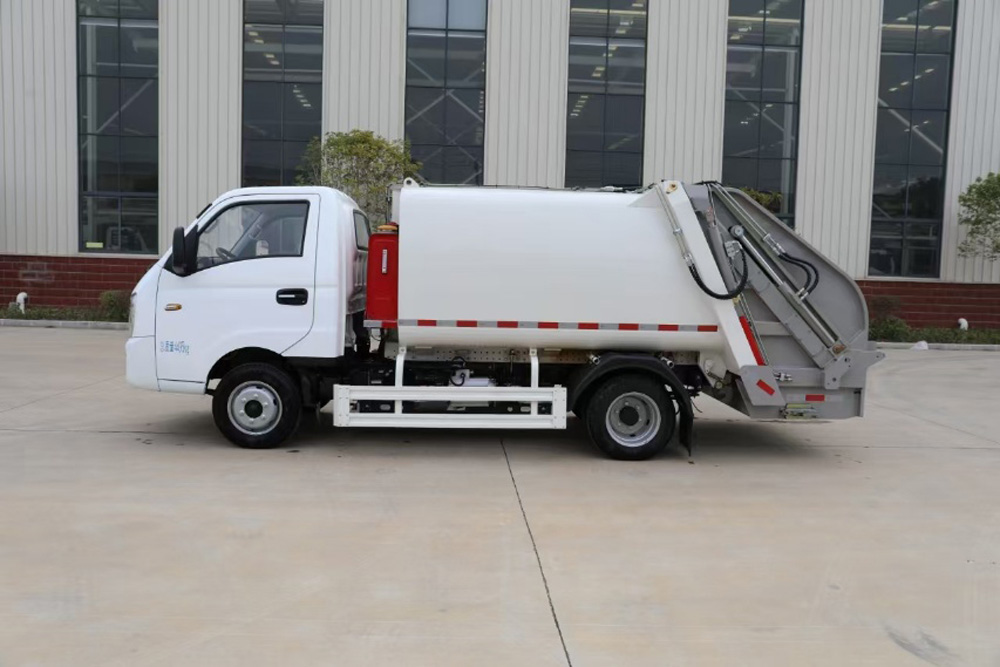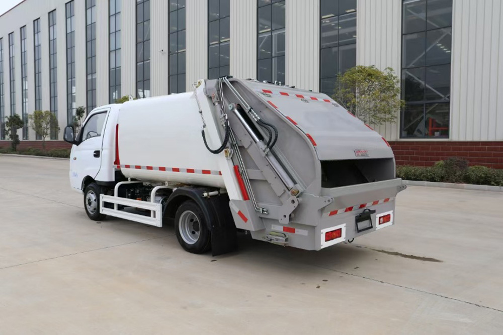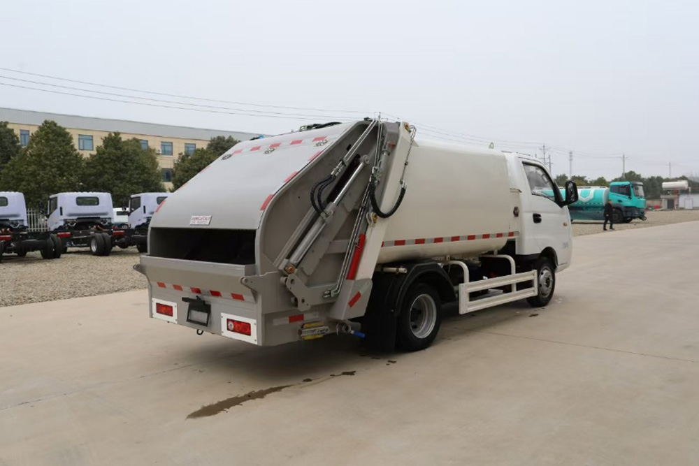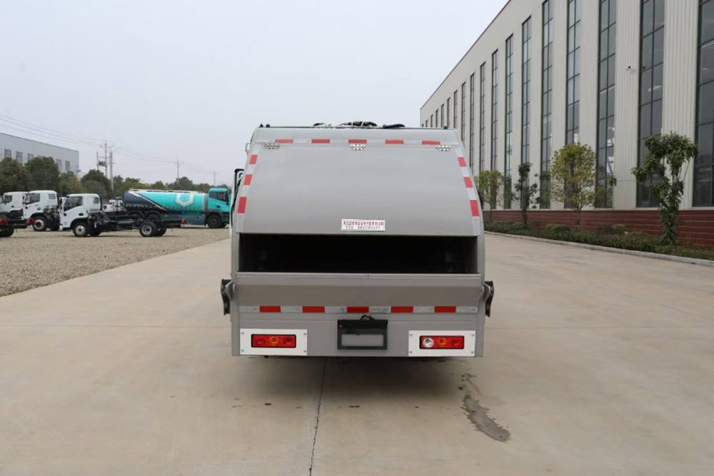 四、其他說明: 涂裝采用噴粉加烤漆工藝。箱體容積3 立方米,為高強(qiáng)度鋼制作的弧形無泄漏船型箱體,頂部有刮滑板,防止垃圾泄漏和異味擴(kuò)散。液壓系統(tǒng)采用國產(chǎn)油缸、睿宸油泵、揚(yáng)州中梅多路閥。后帶翻桶架,可掛 2 只國標(biāo) 240L 方塑料桶,提升機(jī)帶無線遙控。填裝器舉升油缸帶平衡閥,帶氣動密封蓋,填充器底部有污水箱,還配備作業(yè)后支腿和電控限位感應(yīng)系統(tǒng)。