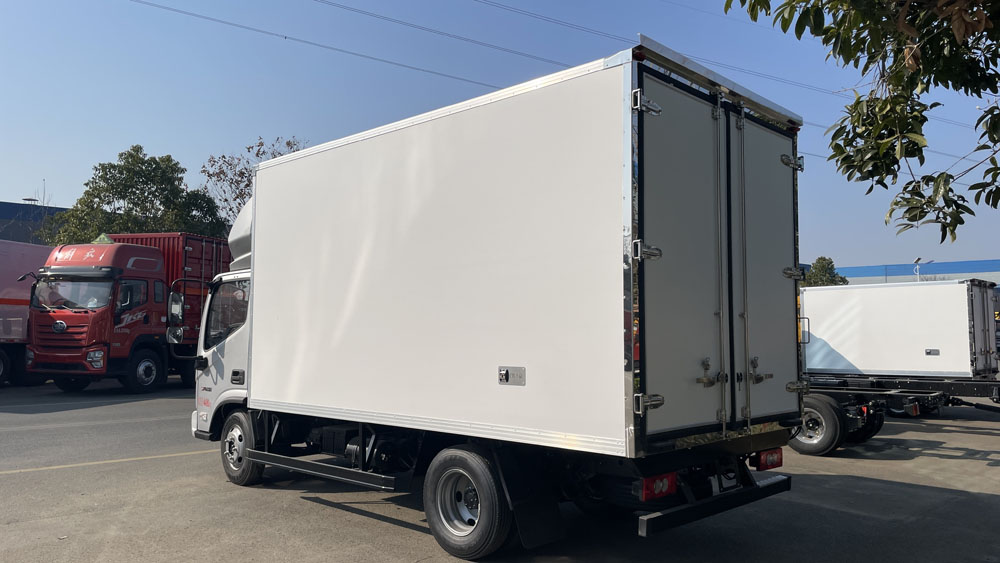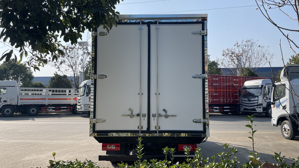 二、廂體配置:采用我司《晶龍工藝》專利技術(shù)——1200噸液壓加熱固化設(shè)備一體成型生產(chǎn)線制造,廂體保溫技術(shù)達(dá)到國(guó)家A級(jí)標(biāo)準(zhǔn),廂體尺寸:080,3700×1960,2100×1800(mm)。工藝特點(diǎn):1、廂板采用全密封樹(shù)脂膠粘連聚氨酯發(fā)泡板高壓加熱固化而成,厚度8cm;2、廂板內(nèi)外面料為2.5mm厚新款納米玻璃鋼(不吸光,隔熱性好,硬度強(qiáng),抗氧化);3、粘連輔料為玻璃纖維絲布;4、無(wú)空隙填充聚氨酯發(fā)泡保溫材料;5、全密封樹(shù)脂膠粘連;6、預(yù)埋實(shí)木加固廂體;7、防銹處理槽鋼框架支撐;8、鋁合金包邊、不銹鋼包角;9、內(nèi)部加裝LED照明燈及廂體示寬燈;10、后門(mén)框、鉸鏈、鎖件均為不銹鋼材質(zhì);11、后門(mén)加裝防撞膠塊;12、采用三元乙丙橡膠密封條。