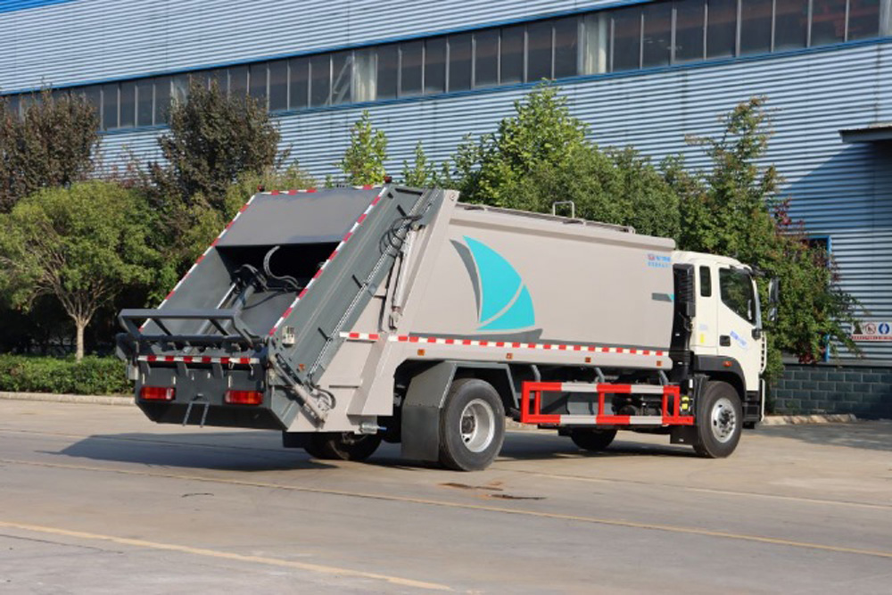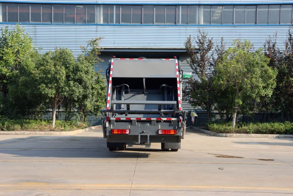 二、上裝配置: 新款平板或弧形箱體,式樣美觀,箱體全滿焊,5-8方箱體厚度邊4底4,10-12方邊4底5,12方以上邊5底5,采用國內(nèi)著名品牌配件,揚(yáng)州中煤或合肥長源油泵和液壓多路換向閥、博利或海普瑞斯油缸,杰特高密度液壓油管,帶掛桶或三角斗翻轉(zhuǎn)進(jìn)料,翻轉(zhuǎn)機(jī)構(gòu)可以翻轉(zhuǎn)國標(biāo)120、240垃圾桶,帶壓縮推板,后蓋帶液壓鎖緊。PLC一鍵操控系統(tǒng),可駕駛室內(nèi)和室外雙電控操作,方便實(shí)用。尾部帶密封橡膠墊,污水收集箱,可防污水滴漏二次污染。