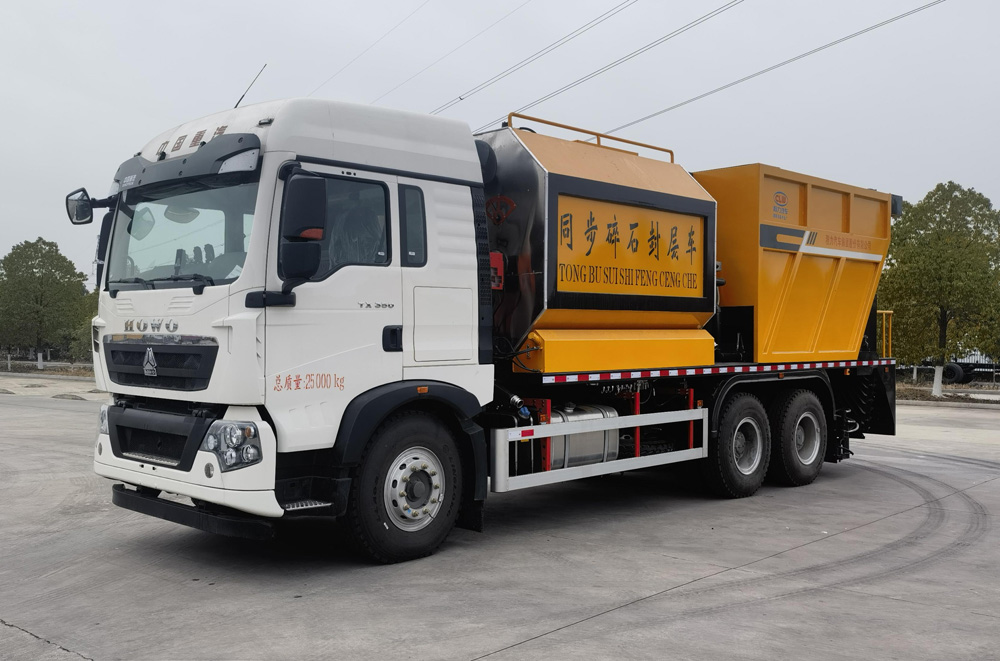 四、其他說(shuō)明: 同步碎石封層是指利用同步碎石封層車將瀝青結(jié)合料的噴灑和石料的灑布同時(shí)進(jìn)行,使瀝青結(jié)合料與石料之間有最充分的接觸,以達(dá)到它們之間最大限度的粘結(jié)度。其更容易保證粘結(jié)劑和石料之間穩(wěn)定的比例關(guān)系,提高作業(yè)生產(chǎn)率,減少了機(jī)械配置,降低了施工成本。瀝青路面經(jīng)過(guò)同步碎石封層后,具有更好的防滑和防滲水性能,能有效治愈路面貧油、掉粒、輕微網(wǎng)裂、車轍、沉陷等危害。無(wú)論是高等級(jí)公路還是普通公路,都可以使用此項(xiàng)技術(shù)。