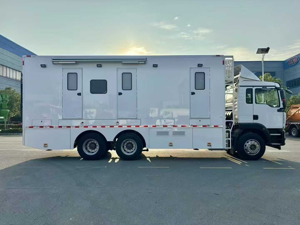 僅在駐車狀態下廂體兩側可擴展,行駛狀態時不可擴展; 側后部工作燈僅在作業狀態下使用,行駛過程中不能點亮;